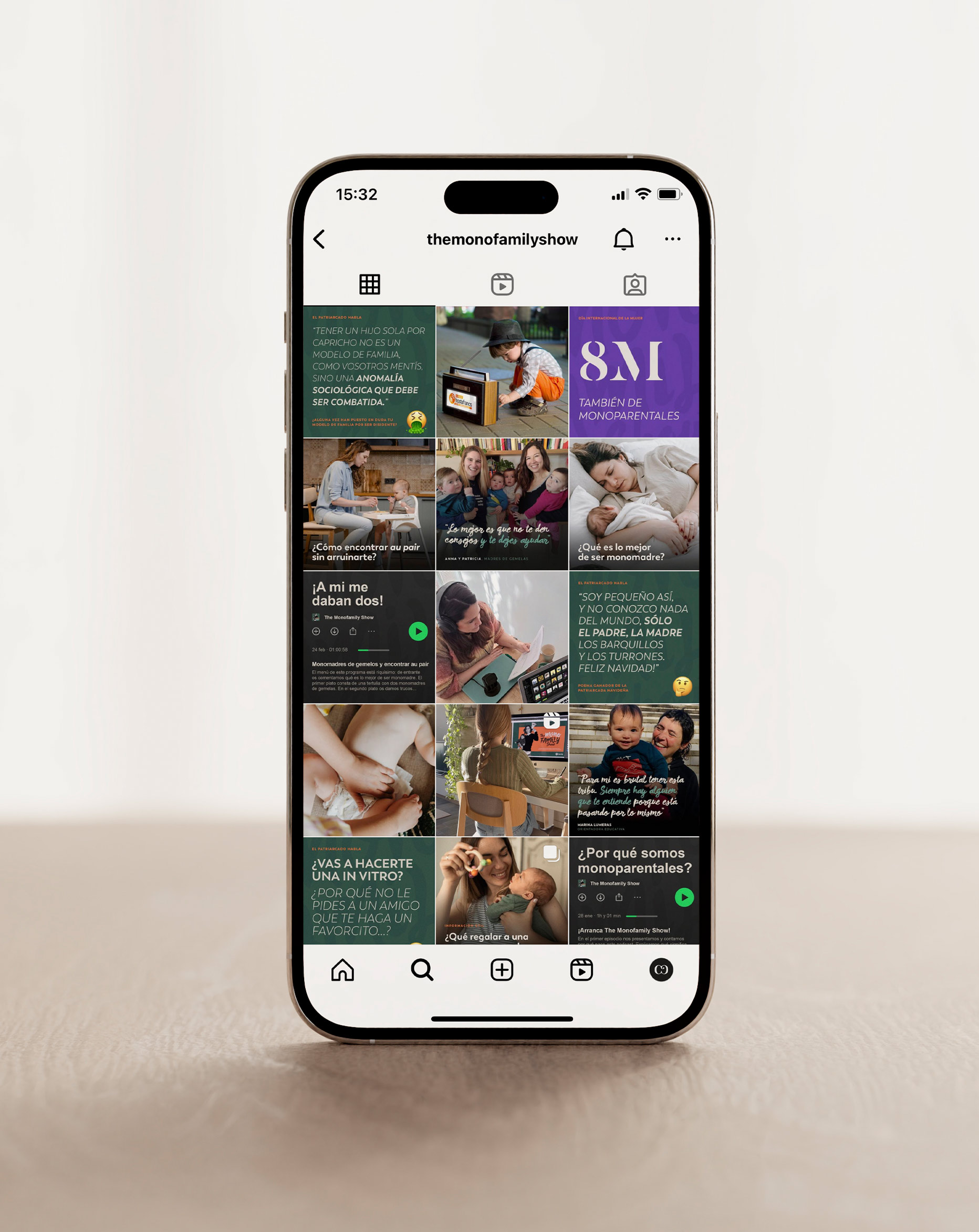 Dirección de arte, ilustración y branding para un podcast que rompe tabúes sobre la crianza monoparental. Un universo gráfico diseñado para visibilizar a ese 10% de la sociedad, utilizando el humor como herramienta de conexión y el diseño como altavoz de una realidad diversa y resiliente.